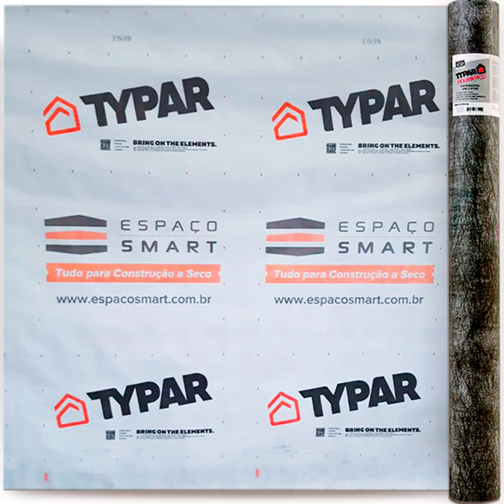 Typar® HouseWrap é a base do sistema de construção a seco para proteção contra intempéries. Um tecido composto não tecido, que fornece o equilíbrio perfeito entre resistência de água/ar e transmissão de vapor de umidade (MVT). Ele reduz a chance de água e ar externos entrarem na cavidade da parede, permitindo que o vapor de umidade de dentro da casa escape pela cavidade da parede.